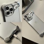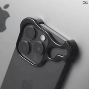 Modern, minimal, and it's all you ever needed. The lightweight reinforced-aluminum Halo™ seamlessly slides on and grips the top and bottom of your iPhone, covering all four corners, while lifting it the off the surface in every direction, the exact amount to elegantly prevent any scratches and damage to the body and cameras.